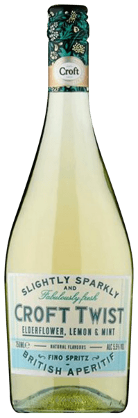 Croft Twist es una bebida refrescante, la versión inglesa del refrescante “rebujito” Andaluz. Una combinación de ingredientes naturales y frescos como la flor de Sauco, limón y menta con Fino Croft , agua, y una ligera burbuja.